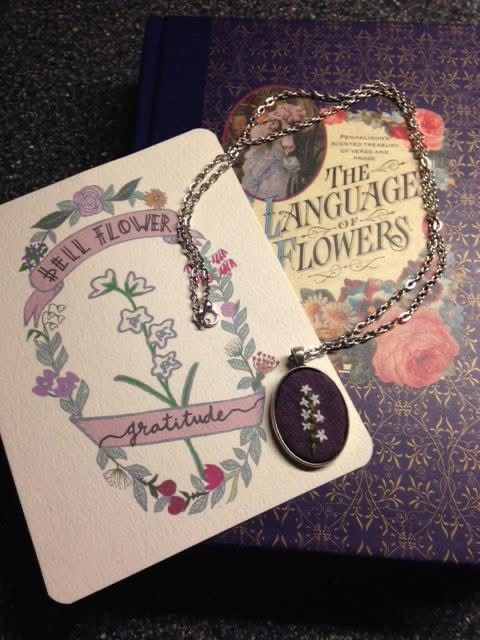 We didn’t get to visit with our Birmingham children over Christmas, but yesterday, a package arrived from our daughter. In it was a lovely “Stitches and Petals” necklace. It is a hand stitched flower on fabric mounted in a silver charm on a neck chain. It is beautiful and a card was included describing the Bell Flower as representing Gratitude.